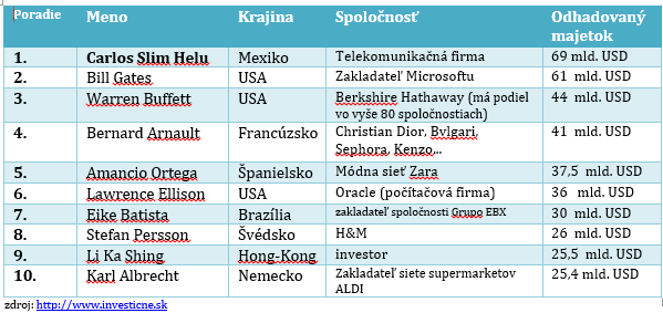 Aktivita - 10 najbohatších ľudí na svete na stiahnutie TU